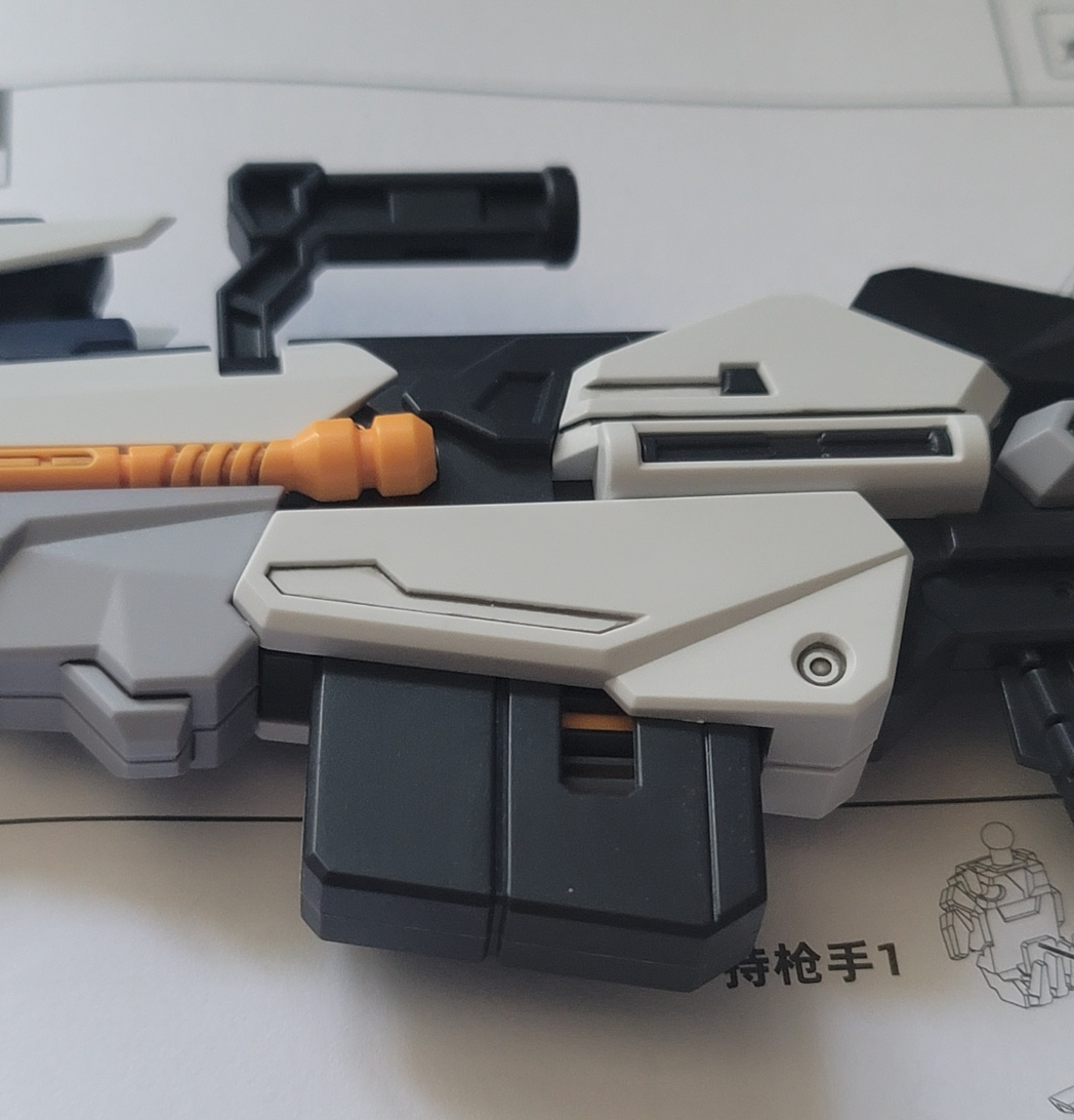롱 레인지 라이플에 탄창(MAGAZINE)을 결합한 모습.