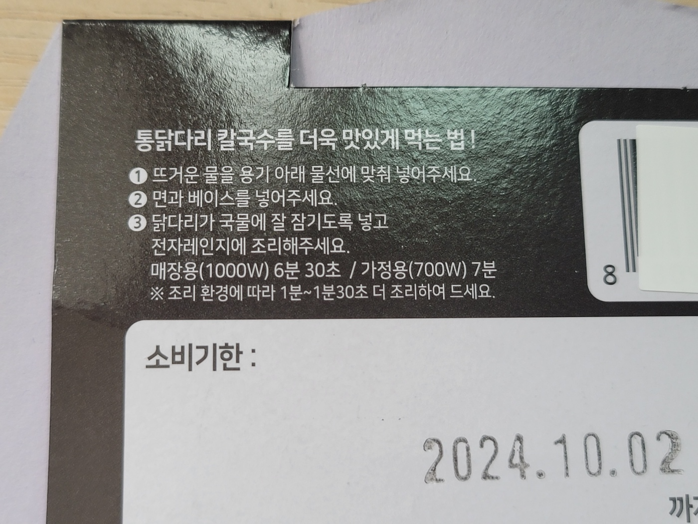 조리법이 안 보이길래 어떻게 먹으라는건가 이리저리 둘러 보고 있는데 뒷면에 조그만하게 인쇄되어 있었다.